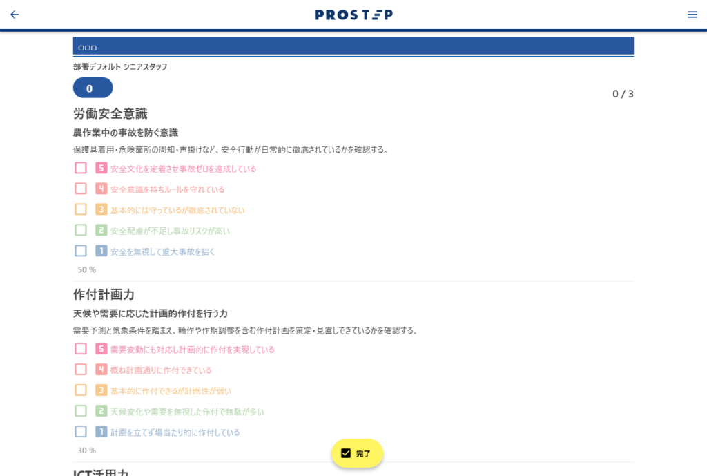 評価基準を確認しながら、適切に入力を行いましょう。