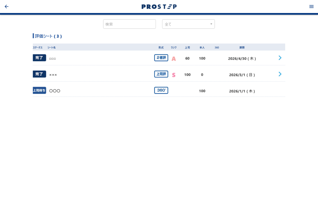 ここでは、自分が対象となっている評価シートを確認することができます。